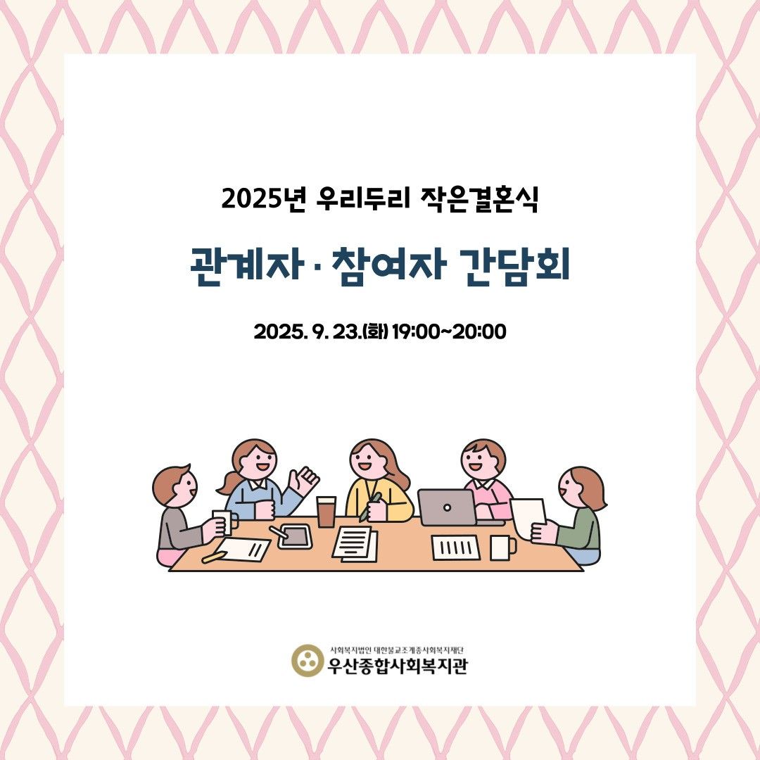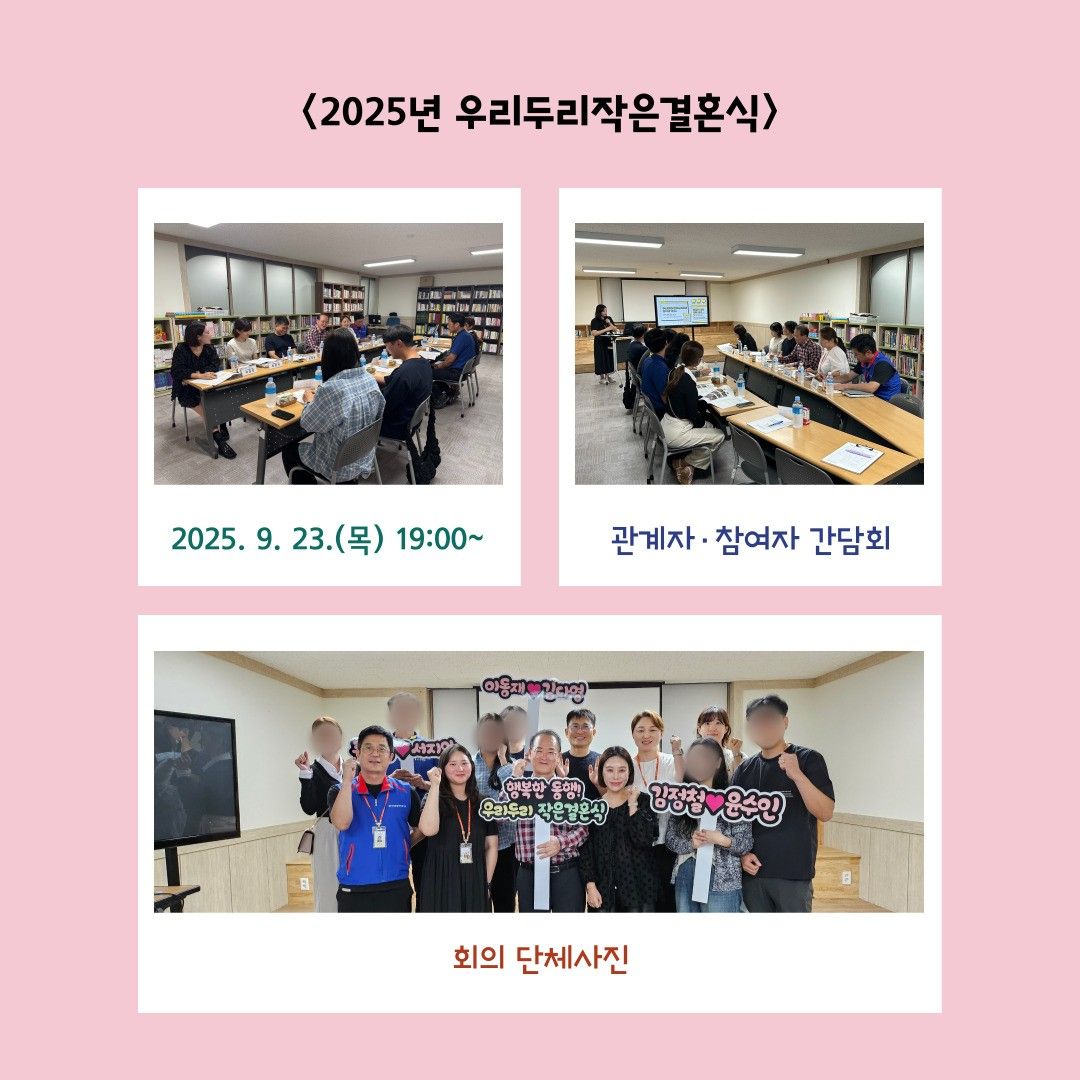 작성일 : 2025년 09월 24일제목 : 2025년 우리두리 작은결혼식 관계자 참여자 간담회
