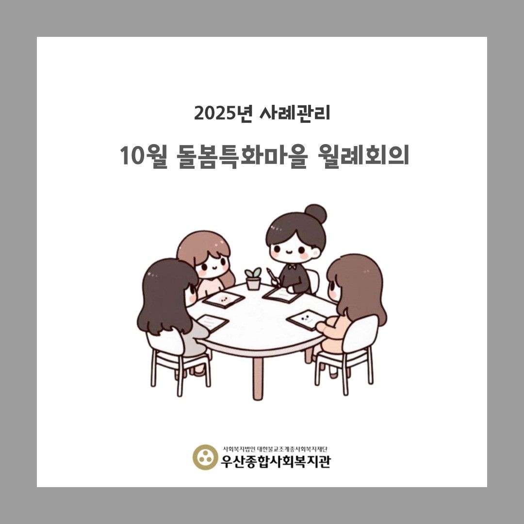 작성일 : 2025년 10월 30일제목 : 2025년 북구 영구임대 돌봄특화마을 돌봄 유관기관 월례회의(10월)