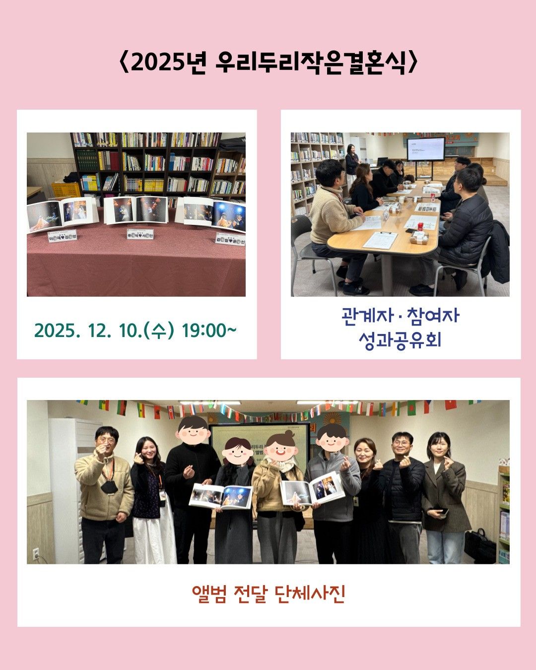 본식 앨범을 전달하며, 만족도 조사결과, 참여자 소감발표 등 다양한 의견을 나누는 시간을 가졌습니다.