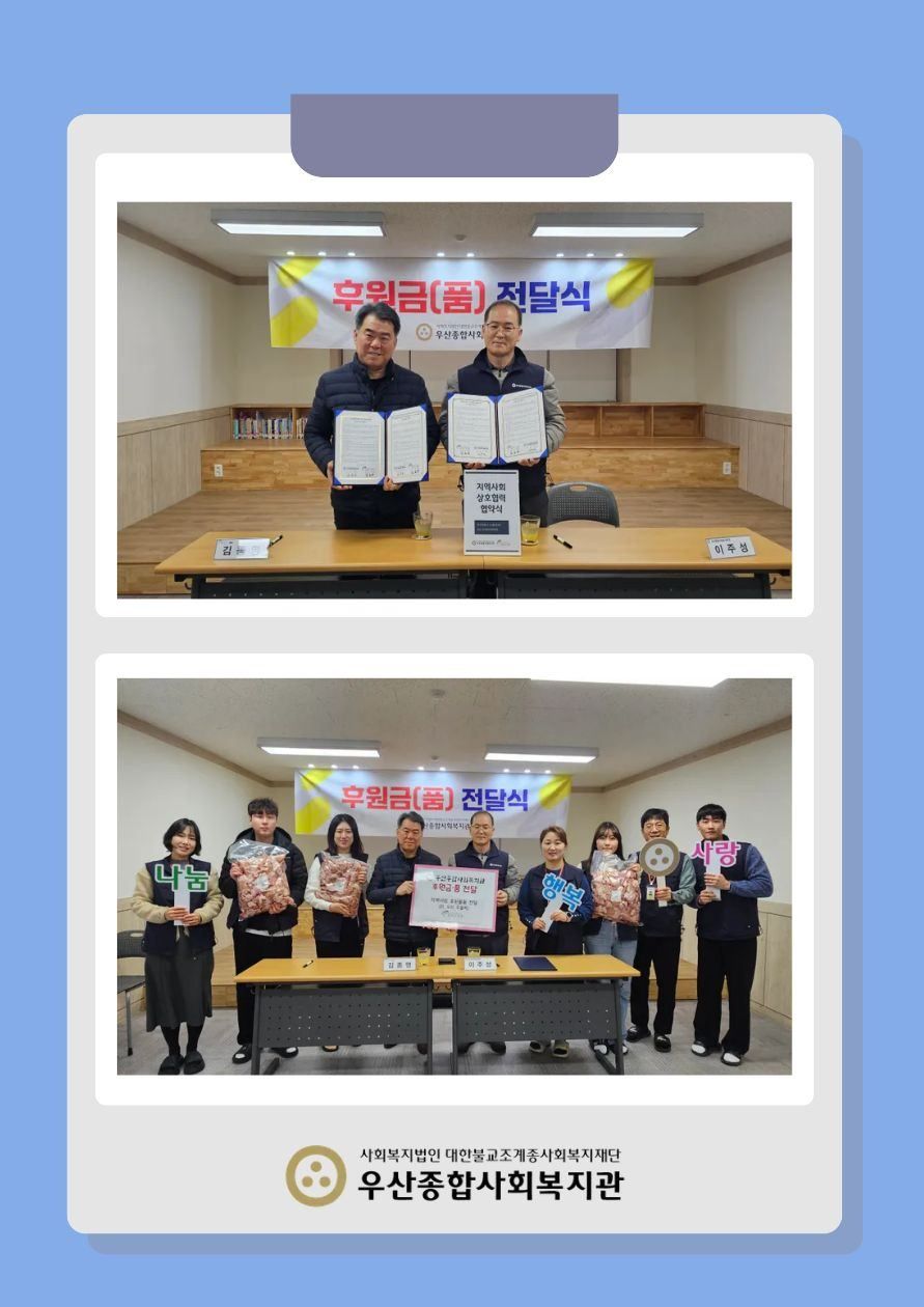 -내용: 지역사회 복지 네트워크 강화를 위해 참조은유통과 소중한 업무협약을 맺었습니다.