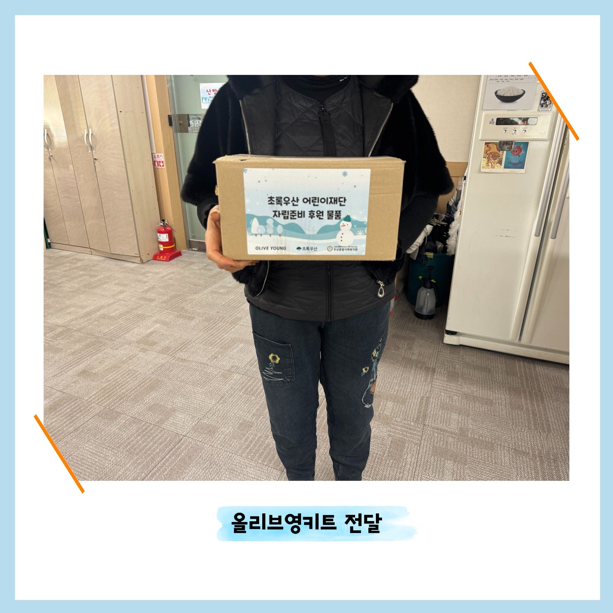 ◎ 내 용:사례관리 대상 아동 세대에 올리브영 키트를 전달하여 아동의 생활 지원에 도움을 제공함.
